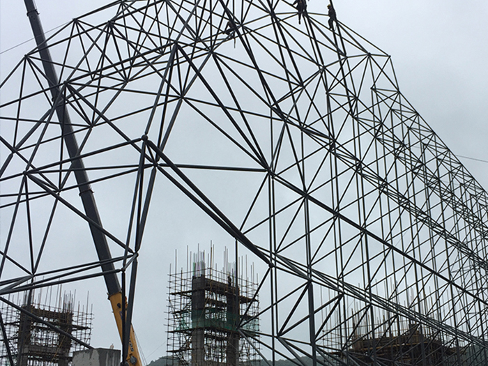4.满堂脚手架是最有利的 螺栓球网架龙口施工平台,它在确保龙口施工安全的同时,又能承当部分网架重量,有效防止网格下沉变形,以及调整网架安装过程中的误差积累和支座与预埋件之间的偏离。